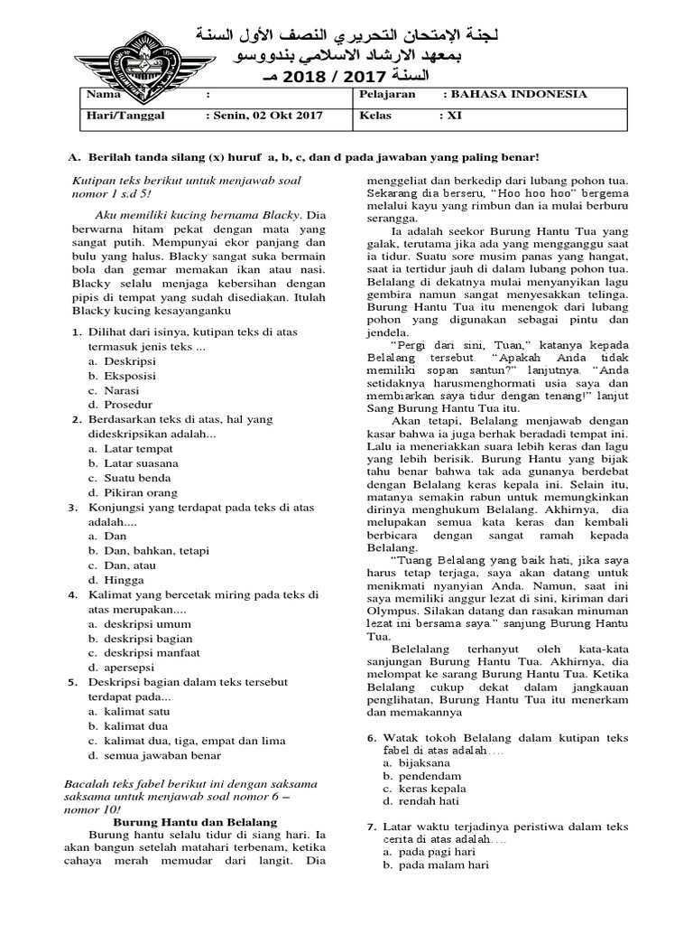 Contoh soal teks cerita fabel kelas vii loading. Ia akan bangun setelah matahari terbenam ketika cahaya merah memudar dari langit. Soal ulangan harian bahasa indonesia kelas 7 tentang fabel contoh.