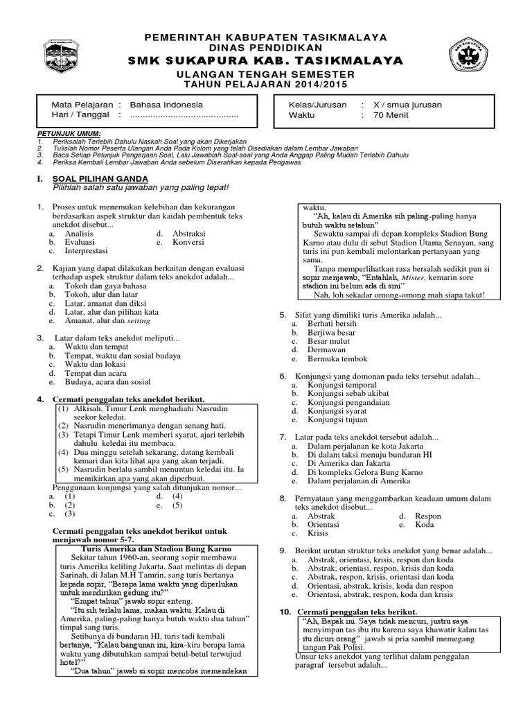 80 Contoh Soal Teks Anekdot Pilihan Ganda Dan Jawabannya
