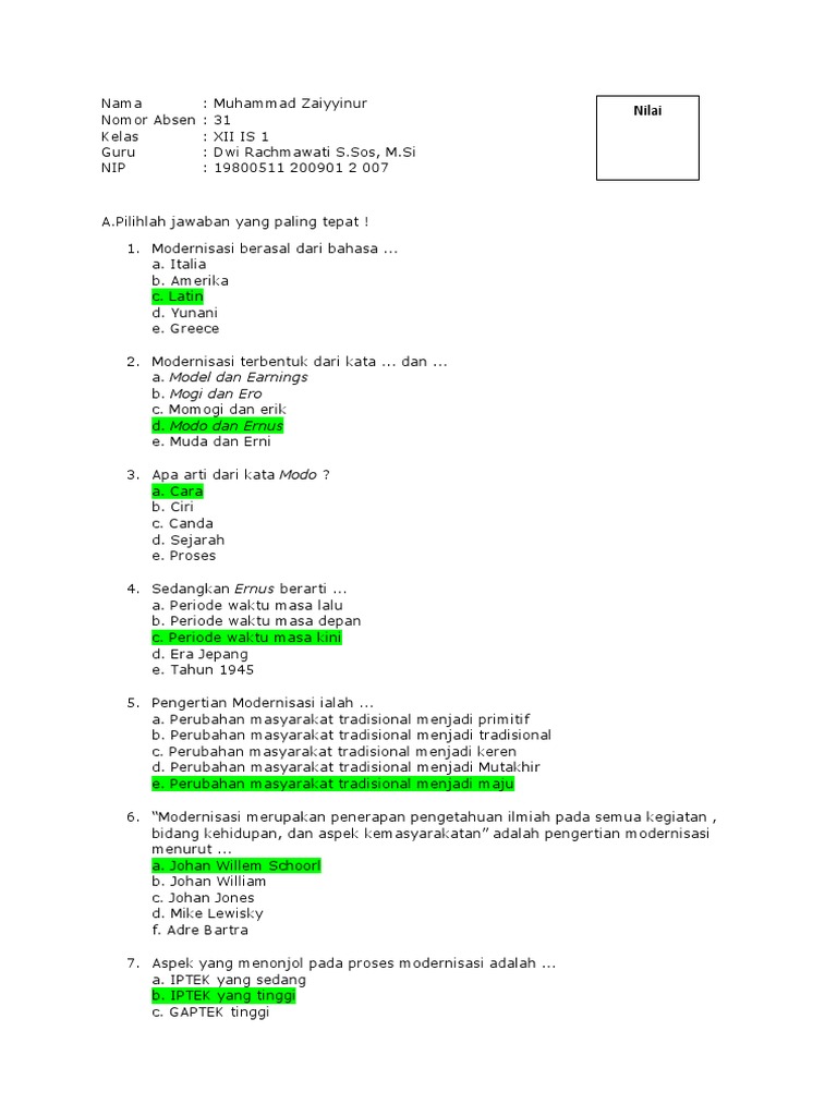 Latihan Soal Bab Modernisasi Dan Globalisasi Sosiologi Kelas 12