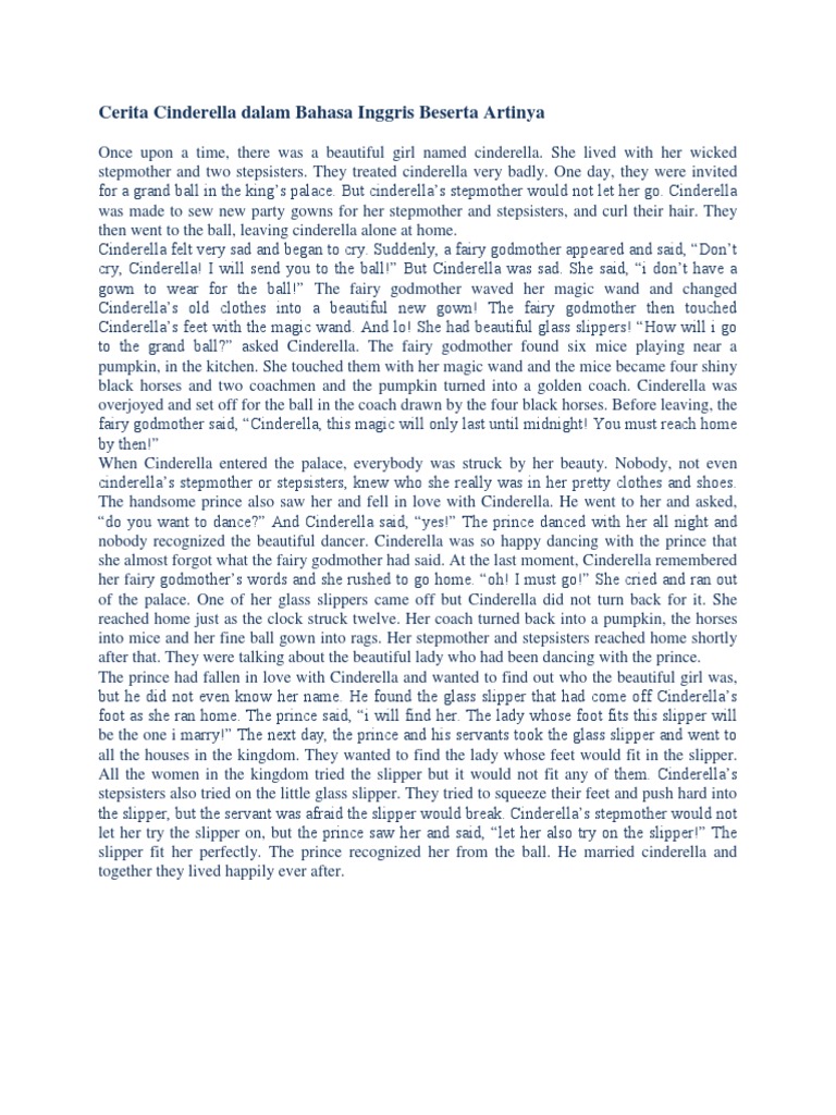 Cerita Cinderella Dalam Bahasa Inggris Dan Terjemahannya Docx
