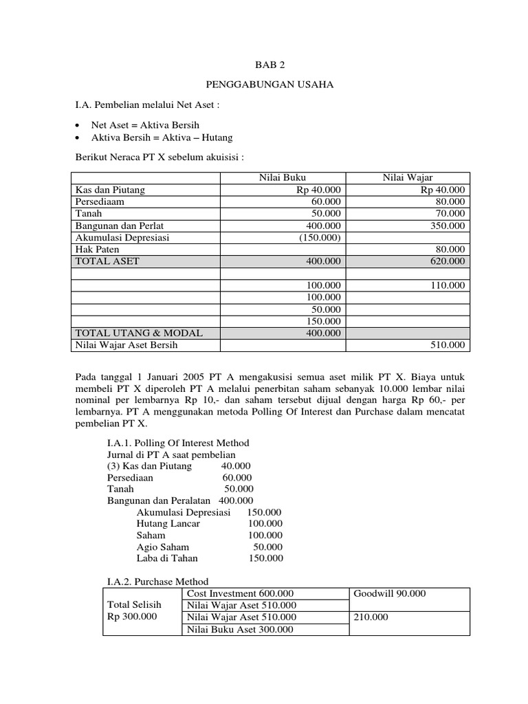 Contoh soal dan jawaban penggabungan usaha dengan metode purchase harus dilakukan dengan menghitung goodwill dalam penggabungan usaha. Ali berniat akan mengambil alih aktiva bersih milik pt. Contoh soal dan jawaban penggabungan usaha secara pool of interest berkaitan dengan laporan posisi keuangan hasil audit antara anak dan induk perusahaan.