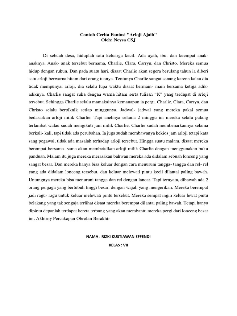 Contoh Cerita Fantasi Beserta Ringkasannya Tolong Bsok Mau Kumpulkan Brainly Co Id