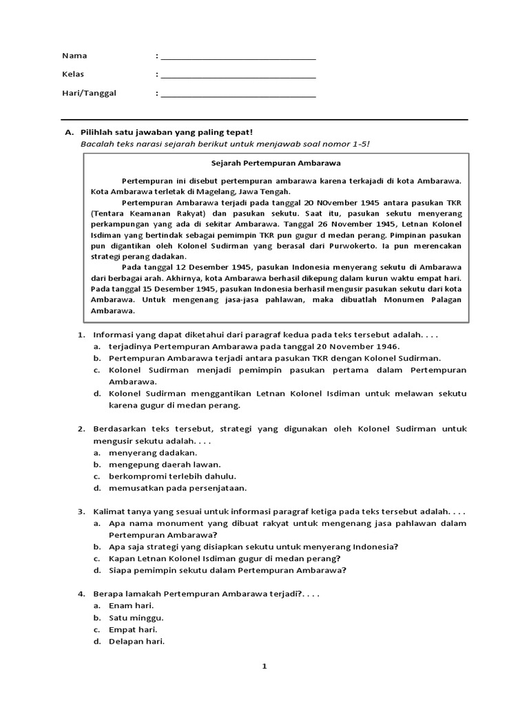 Soal Bahasa Indonesia Kelas 8 DRAFT 2 months ago by muqorrobinmuhammad29_26783 8th grade Other Played 1 times 0 likes 87 average accuracy 0 Save Edit Edit Print Share Edit Delete Report an issue Start a multiplayer. Rumuscoid Pada kesempatan kali ini kita akan membahas makalah materi tentang bank contoh soal bahasa indonesia kelas 8 semester 1 dan 2 serta jawabannya yang mana pada artikel sebelumnya kita sudah membahas makalah materi tentang soal bahasa indonesia kelas 7. Berikut ini adalah rincian Soal UAS Bahasa Indonesia Kelas 8.